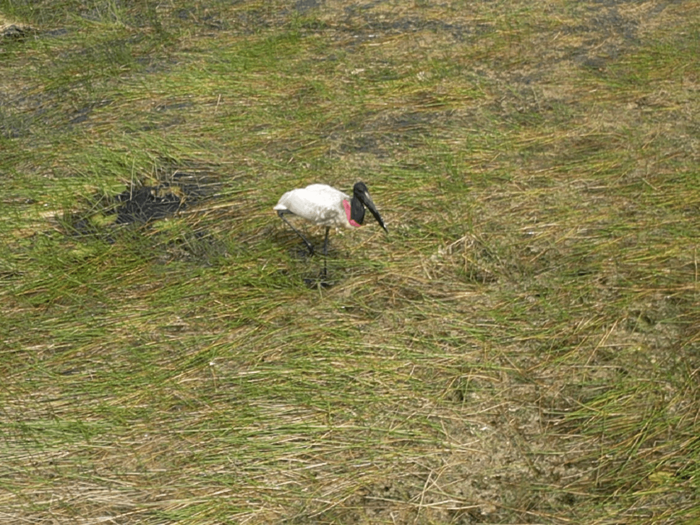 among the grasses; Bare-throated Tiger Herons and Great Blue Herons stalking the shallows; Roseate Spoonbills sweeping their pink beaks in search of food.